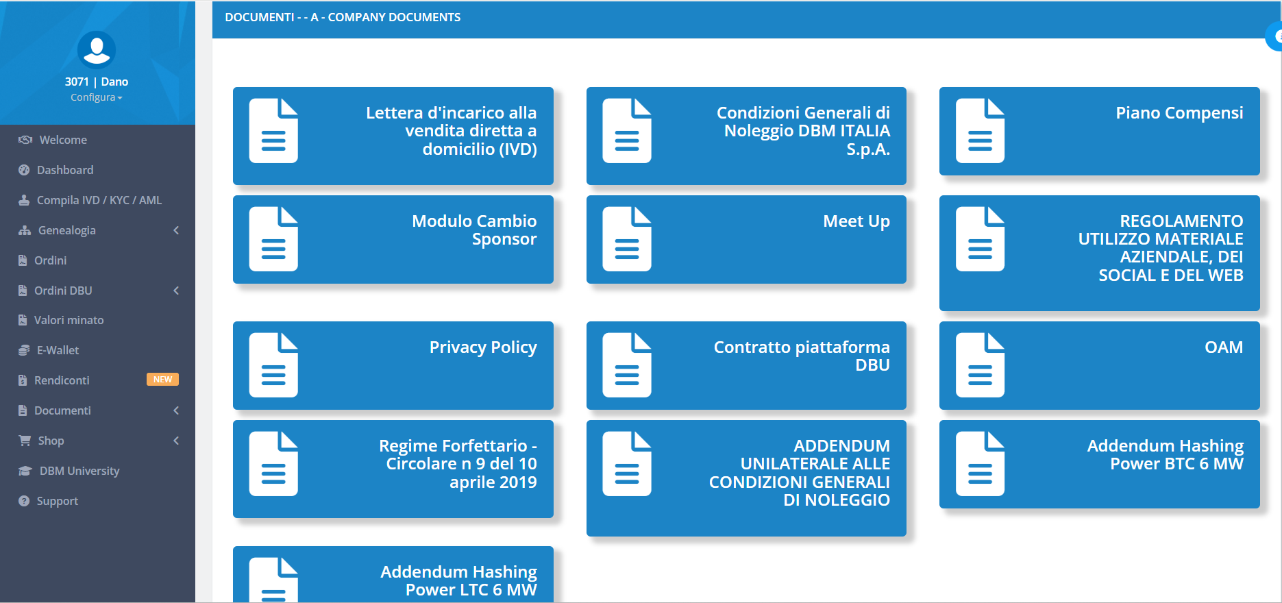 Nella voce di menù DOCUMENTI sia i Clienti che gli Agenti potranno trovare documenti riguardati l'azienda, ed altri specifici documenti ad uso esclusivo dei Clienti/Agenti: